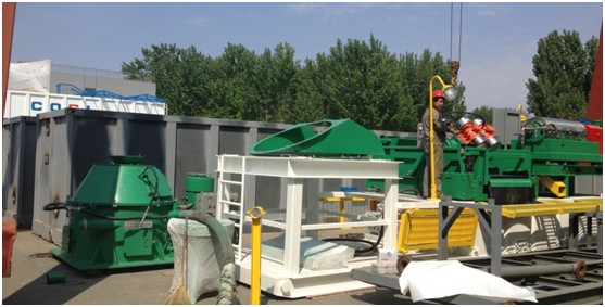 在鉆井現場兩臺 GNZS853 140m³/h處理量的鉆井液振動篩分離回收鉆井泥漿中大量的固相顆粒。一臺除砂除泥器一體機(GNZS853-3S16N,3個除砂旋流器和16除泥旋流器)分離比較小的固相顆粒。通過凈化的鉆井泥漿,達到了很好的凈化效果。 作業現場臥螺離心機安裝在泥漿罐上用來控制在鉆井地層發生變化時回鉆泥漿的穩定性,同時可以根據現場需求配備不同比重的泥漿。